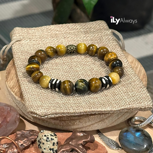 Experience the essence of courage, protection, and inner strength with our captivating new bracelet design, meticulously crafted to inspire confidence and resilience. This unique piece features an enchanting combination of Falcon's Eye, Tiger's Eye, Yellow Tiger's Eye, and Native American Buffalo Bone Beads.