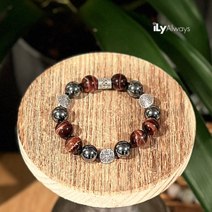 Together, Bull's Eye and Hematite form a powerful combination, empowering you to take bold action and manifest your desires with confidence and clarity. Wear this bold bracelet as a symbol of your strength and determination, knowing that you are supported by the unwavering energies of these magnificent gemstones.